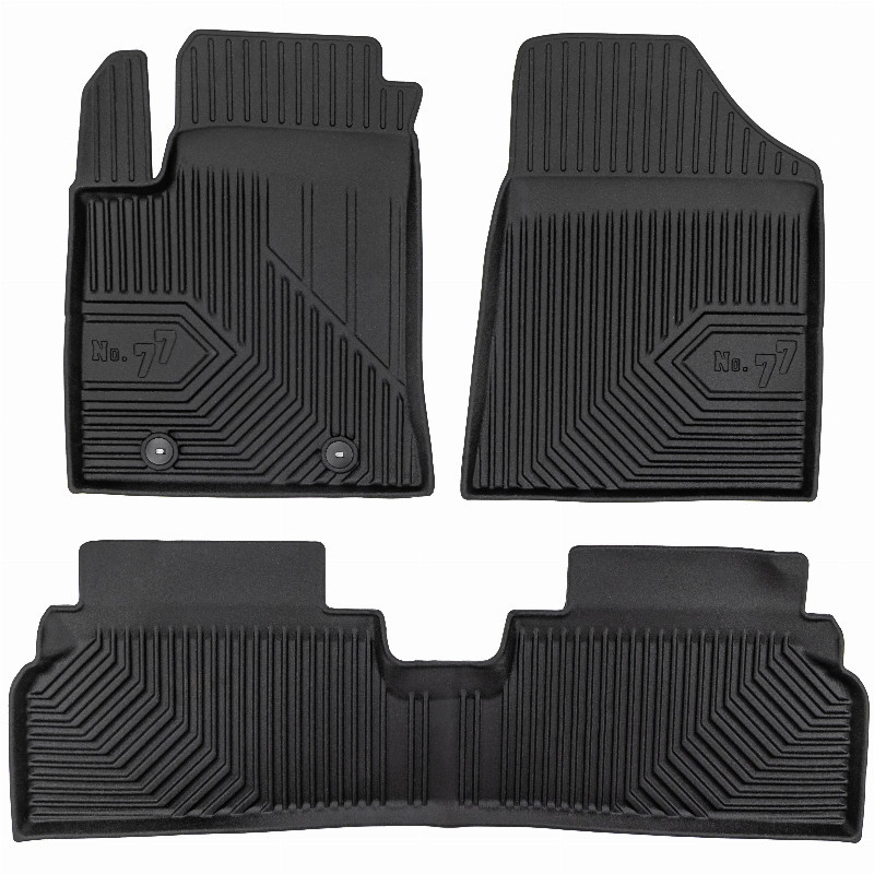 Guminiai ProLine 3D kilimėliai: (aukštos kokybės plastiko, gumos mišinys / TPE, komplektas - 4vnt., juodi, krašto aukštis 7 cm, montavimo būdas - spaustukai). AUTOMOBILIŲ KILIMĖLIAI FROGUM 3D PROLINE LUXURY • Dėl naujoviškos 3D skenavimo technologijos atitinka idealiai; • Kraštai papildomai apsaugoti – aukštis 7 cm, visada švarus automobilis; • Itin patvari medžiaga su unikalia neslystančia struktūra, atspari nešvarumams. • Išskirtinis stabilumas dėl spaustukų – lengvai montuojama spustelėjus; • Pakojo zonos apsauga – komfortas, leidžiantis nuleisti vairuotojo koją; 3D ProLine aukštos kokybės guminiai kilimėliai padeda išlaikyti automobilį švarų. Modernus ir funkcionalus dizainas, ir ypač aukštas kraštas garantuoja efektyvų vandens ir purvo surinkimą ir neleidžia jiems išbėgti. Taip automobilio salonas išlieka švarus. Pagaminti iš aukštos kokybės gumos, kurioje nėra toksiškų komponentų. Bekvapis. Kilimėliai idealiai atitinka ir puikiai priglunda prie salono grindų. Guminiai kilimėliai išlaiko savo elastingumą net esant temperatūros pokyčiams. Specialus paviršius neleidžia kilimėliams slysti vairuojant, o tai daro didelę įtaką saugumui ir kelionės patogumui