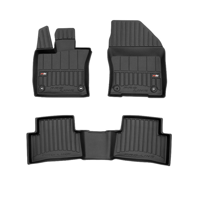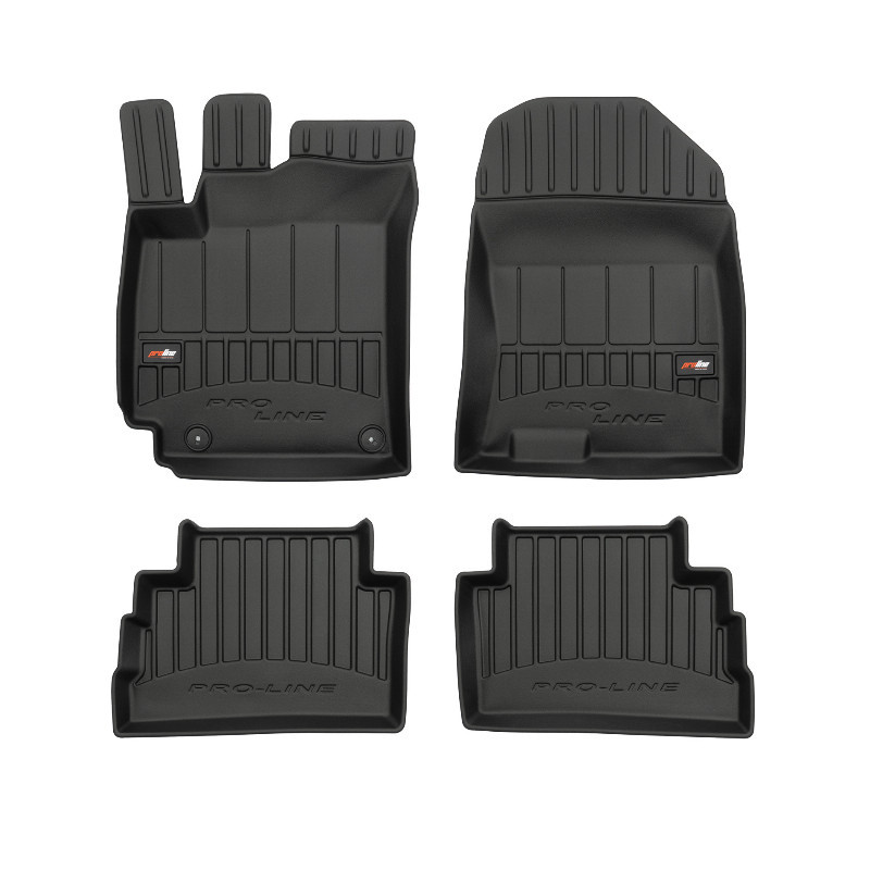 Guminiai Premium 77 kilimėliai: (aukštos kokybės plastiko, gumos mišinys / TPE, komplektas - 4vnt., juodi, krašto aukštis 4 cm, montavimo būdas - spaustukai). AUTOMOBILIŲ KILIMĖLIAI FROGUM 77 PREMIUM • Dėl naujoviškos 3D skenavimo technologijos atitinka idealiai; • Krašto aukštis - 4 cm suteikia didesnę apsaugą nuo nešvarumų • Modernus ir funkcionalus dizainas, išlaikantis nešvarumus kilimėlio viduje • Neslystantys spacialūs spaustukai, lengva montuoti; • Speciali apsauga, leidžianti nuleisti vairuotojo koją; Aukšto lygio apsauga jūsų automobiliui, kilimėliai idealiai atitinka ir puikiai priglunda prie salono grindų. Modernus ir funkcionalus dizainas, bei aukštas kraštas garantuoja efektyvų vandens ir purvo surinkimą ir neleidžia jam nutekėti. Taip automobilio salonas išlieka švarus. Pagaminti iš aukštos kokybės gumos, kurioje nėra toksiškų komponentų. Bekvapis. Kilimėliai turi spaustukus, todėl jį lengva pritvirtinti prie grindų. Guminiai kilimėliai išlaiko savo elastingumą net esant temperatūros pokyčiams. Specialus paviršius neleidžia kilimėliams slysti vairuojant, todėl labai paveikia saugumą ir kelionės komfortą.