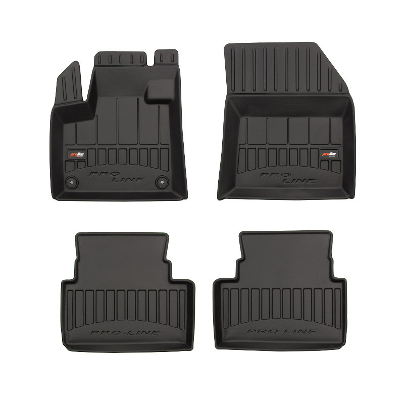 Guminiai ProLine 3D kilimėliai: (aukštos kokybės plastiko, gumos mišinys / TPE, komplektas - 4vnt., juodi, krašto aukštis 7 cm, montavimo būdas - spaustukai). AUTOMOBILIŲ KILIMĖLIAI FROGUM 3D PROLINE LUXURY • Dėl naujoviškos 3D skenavimo technologijos atitinka idealiai; • Kraštai papildomai apsaugoti – aukštis 7 cm, visada švarus automobilis; • Itin patvari medžiaga su unikalia neslystančia struktūra, atspari nešvarumams. • Išskirtinis stabilumas dėl spaustukų – lengvai montuojama spustelėjus; • Pakojo zonos apsauga – komfortas, leidžiantis nuleisti vairuotojo koją; 3D ProLine aukštos kokybės guminiai kilimėliai padeda išlaikyti automobilį švarų. Modernus ir funkcionalus dizainas, ir ypač aukštas kraštas garantuoja efektyvų vandens ir purvo surinkimą ir neleidžia jiems išbėgti. Taip automobilio salonas išlieka švarus. Pagaminti iš aukštos kokybės gumos, kurioje nėra toksiškų komponentų. Bekvapis. Kilimėliai idealiai atitinka ir puikiai priglunda prie salono grindų. Guminiai kilimėliai išlaiko savo elastingumą net esant temperatūros pokyčiams. Specialus paviršius neleidžia kilimėliams slysti vairuojant, o tai daro didelę įtaką saugumui ir kelionės patogumui