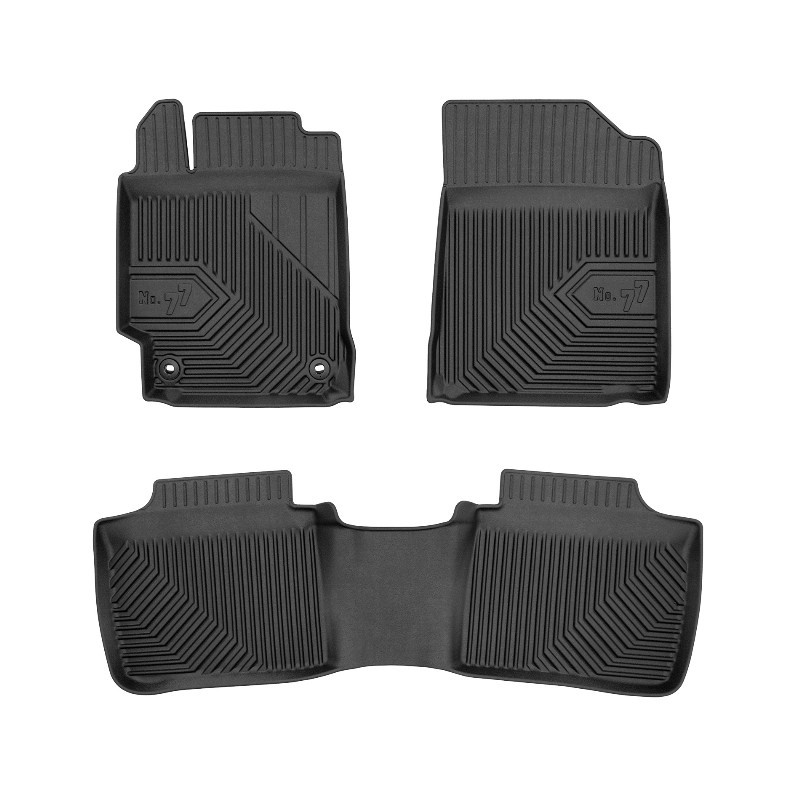Guminiai ProLine 3D kilimėliai: (aukštos kokybės plastiko, gumos mišinys / TPE, komplektas - 4vnt., juodi, krašto aukštis 7 cm, montavimo būdas - spaustukai). AUTOMOBILIŲ KILIMĖLIAI FROGUM 3D PROLINE LUXURY • Dėl naujoviškos 3D skenavimo technologijos atitinka idealiai; • Kraštai papildomai apsaugoti – aukštis 7 cm, visada švarus automobilis; • Itin patvari medžiaga su unikalia neslystančia struktūra, atspari nešvarumams. • Išskirtinis stabilumas dėl spaustukų – lengvai montuojama spustelėjus; • Pakojo zonos apsauga – komfortas, leidžiantis nuleisti vairuotojo koją; 3D ProLine aukštos kokybės guminiai kilimėliai padeda išlaikyti automobilį švarų. Modernus ir funkcionalus dizainas, ir ypač aukštas kraštas garantuoja efektyvų vandens ir purvo surinkimą ir neleidžia jiems išbėgti. Taip automobilio salonas išlieka švarus. Pagaminti iš aukštos kokybės gumos, kurioje nėra toksiškų komponentų. Bekvapis. Kilimėliai idealiai atitinka ir puikiai priglunda prie salono grindų. Guminiai kilimėliai išlaiko savo elastingumą net esant temperatūros pokyčiams. Specialus paviršius neleidžia kilimėliams slysti vairuojant, o tai daro didelę įtaką saugumui ir kelionės patogumui