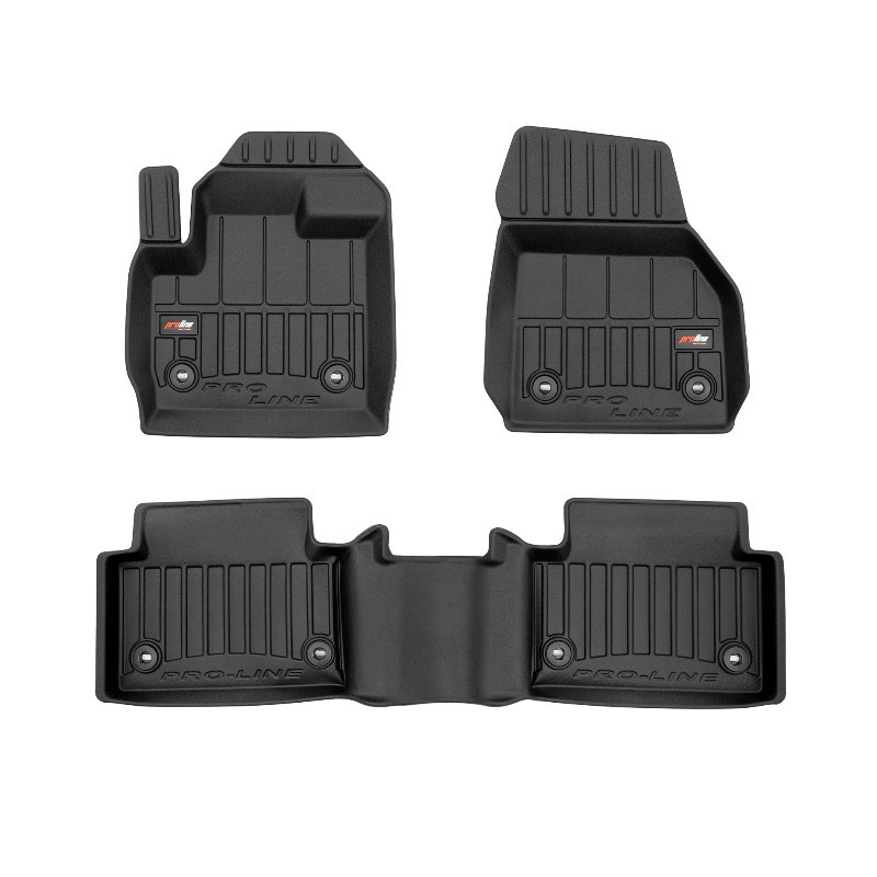 Guminiai ProLine 3D kilimėliai: (aukštos kokybės plastiko, gumos mišinys / TPE, komplektas - 4vnt., juodi, krašto aukštis 7 cm, montavimo būdas - spaustukai). AUTOMOBILIŲ KILIMĖLIAI FROGUM 3D PROLINE LUXURY • Dėl naujoviškos 3D skenavimo technologijos atitinka idealiai; • Kraštai papildomai apsaugoti – aukštis 7 cm, visada švarus automobilis; • Itin patvari medžiaga su unikalia neslystančia struktūra, atspari nešvarumams. • Išskirtinis stabilumas dėl spaustukų – lengvai montuojama spustelėjus; • Pakojo zonos apsauga – komfortas, leidžiantis nuleisti vairuotojo koją; 3D ProLine aukštos kokybės guminiai kilimėliai padeda išlaikyti automobilį švarų. Modernus ir funkcionalus dizainas, ir ypač aukštas kraštas garantuoja efektyvų vandens ir purvo surinkimą ir neleidžia jiems išbėgti. Taip automobilio salonas išlieka švarus. Pagaminti iš aukštos kokybės gumos, kurioje nėra toksiškų komponentų. Bekvapis. Kilimėliai idealiai atitinka ir puikiai priglunda prie salono grindų. Guminiai kilimėliai išlaiko savo elastingumą net esant temperatūros pokyčiams. Specialus paviršius neleidžia kilimėliams slysti vairuojant, o tai daro didelę įtaką saugumui ir kelionės patogumui