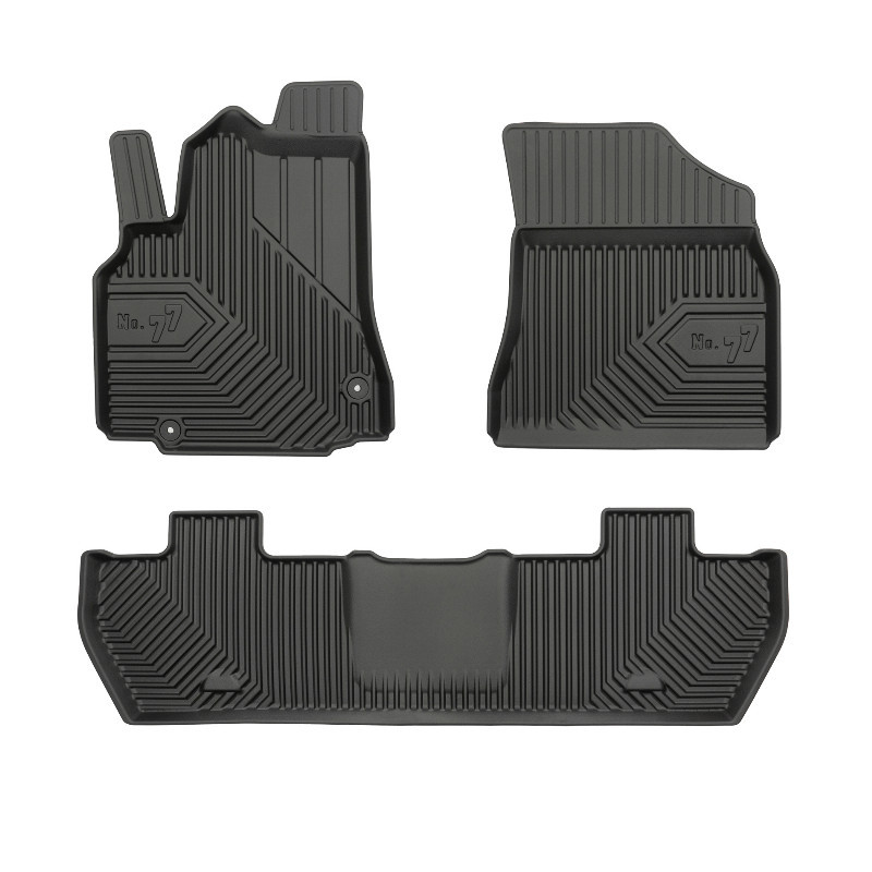 Guminiai ProLine 3D kilimėliai: (aukštos kokybės plastiko, gumos mišinys / TPE, komplektas - 4vnt., juodi, krašto aukštis 7 cm, montavimo būdas - spaustukai). AUTOMOBILIŲ KILIMĖLIAI FROGUM 3D PROLINE LUXURY • Dėl naujoviškos 3D skenavimo technologijos atitinka idealiai; • Kraštai papildomai apsaugoti – aukštis 7 cm, visada švarus automobilis; • Itin patvari medžiaga su unikalia neslystančia struktūra, atspari nešvarumams. • Išskirtinis stabilumas dėl spaustukų – lengvai montuojama spustelėjus; • Pakojo zonos apsauga – komfortas, leidžiantis nuleisti vairuotojo koją; 3D ProLine aukštos kokybės guminiai kilimėliai padeda išlaikyti automobilį švarų. Modernus ir funkcionalus dizainas, ir ypač aukštas kraštas garantuoja efektyvų vandens ir purvo surinkimą ir neleidžia jiems išbėgti. Taip automobilio salonas išlieka švarus. Pagaminti iš aukštos kokybės gumos, kurioje nėra toksiškų komponentų. Bekvapis. Kilimėliai idealiai atitinka ir puikiai priglunda prie salono grindų. Guminiai kilimėliai išlaiko savo elastingumą net esant temperatūros pokyčiams. Specialus paviršius neleidžia kilimėliams slysti vairuojant, o tai daro didelę įtaką saugumui ir kelionės patogumui