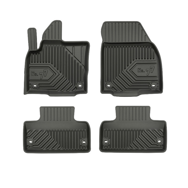 Guminiai ProLine 3D kilimėliai: (aukštos kokybės plastiko, gumos mišinys / TPE, komplektas - 4vnt., juodi, krašto aukštis 7 cm, montavimo būdas - spaustukai). AUTOMOBILIŲ KILIMĖLIAI FROGUM 3D PROLINE LUXURY • Dėl naujoviškos 3D skenavimo technologijos atitinka idealiai; • Kraštai papildomai apsaugoti – aukštis 7 cm, visada švarus automobilis; • Itin patvari medžiaga su unikalia neslystančia struktūra, atspari nešvarumams. • Išskirtinis stabilumas dėl spaustukų – lengvai montuojama spustelėjus; • Pakojo zonos apsauga – komfortas, leidžiantis nuleisti vairuotojo koją; 3D ProLine aukštos kokybės guminiai kilimėliai padeda išlaikyti automobilį švarų. Modernus ir funkcionalus dizainas, ir ypač aukštas kraštas garantuoja efektyvų vandens ir purvo surinkimą ir neleidžia jiems išbėgti. Taip automobilio salonas išlieka švarus. Pagaminti iš aukštos kokybės gumos, kurioje nėra toksiškų komponentų. Bekvapis. Kilimėliai idealiai atitinka ir puikiai priglunda prie salono grindų. Guminiai kilimėliai išlaiko savo elastingumą net esant temperatūros pokyčiams. Specialus paviršius neleidžia kilimėliams slysti vairuojant, o tai daro didelę įtaką saugumui ir kelionės patogumui