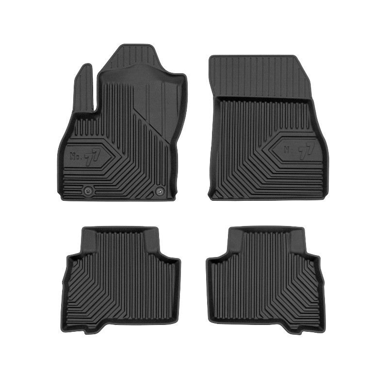 Guminiai Premium 77 kilimėliai: (aukštos kokybės plastiko, gumos mišinys / TPE, komplektas - 4vnt., juodi, krašto aukštis 4 cm, montavimo būdas - spaustukai). AUTOMOBILIŲ KILIMĖLIAI FROGUM 77 PREMIUM • Dėl naujoviškos 3D skenavimo technologijos atitinka idealiai; • Krašto aukštis - 4 cm suteikia didesnę apsaugą nuo nešvarumų • Modernus ir funkcionalus dizainas, išlaikantis nešvarumus kilimėlio viduje • Neslystantys spacialūs spaustukai, lengva montuoti; • Speciali apsauga, leidžianti nuleisti vairuotojo koją; Aukšto lygio apsauga jūsų automobiliui, kilimėliai idealiai atitinka ir puikiai priglunda prie salono grindų. Modernus ir funkcionalus dizainas, bei aukštas kraštas garantuoja efektyvų vandens ir purvo surinkimą ir neleidžia jam nutekėti. Taip automobilio salonas išlieka švarus. Pagaminti iš aukštos kokybės gumos, kurioje nėra toksiškų komponentų. Bekvapis. Kilimėliai turi spaustukus, todėl jį lengva pritvirtinti prie grindų. Guminiai kilimėliai išlaiko savo elastingumą net esant temperatūros pokyčiams. Specialus paviršius neleidžia kilimėliams slysti vairuojant, todėl labai paveikia saugumą ir kelionės komfortą.