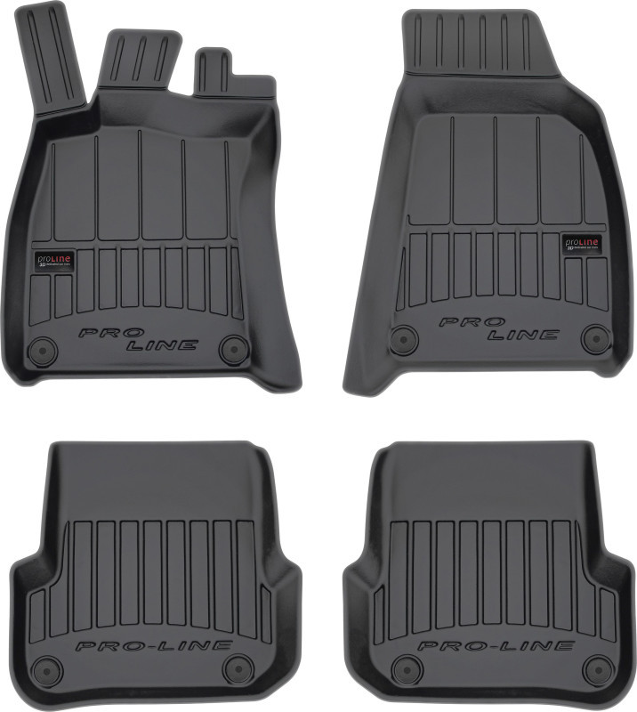 Guminiai ProLine 3D kilimėliai: (aukštos kokybės plastiko, gumos mišinys / TPE, komplektas - 3vnt., juodi, krašto aukštis 7 cm, montavimo būdas - spaustukai). AUTOMOBILIŲ KILIMĖLIAI FROGUM 3D PROLINE LUXURY • Dėl naujoviškos 3D skenavimo technologijos atitinka idealiai; • Kraštai papildomai apsaugoti – aukštis 7 cm, visada švarus automobilis; • Itin patvari medžiaga su unikalia neslystančia struktūra, atspari nešvarumams. • Išskirtinis stabilumas dėl spaustukų – lengvai montuojama spustelėjus; • Pakojo zonos apsauga – komfortas, leidžiantis nuleisti vairuotojo koją; 3D ProLine aukštos kokybės guminiai kilimėliai padeda išlaikyti automobilį švarų. Modernus ir funkcionalus dizainas, ir ypač aukštas kraštas garantuoja efektyvų vandens ir purvo surinkimą ir neleidžia jiems išbėgti. Taip automobilio salonas išlieka švarus. Pagaminti iš aukštos kokybės gumos, kurioje nėra toksiškų komponentų. Bekvapis. Kilimėliai idealiai atitinka ir puikiai priglunda prie salono grindų. Guminiai kilimėliai išlaiko savo elastingumą net esant temperatūros pokyčiams. Specialus paviršius neleidžia kilimėliams slysti vairuojant, o tai daro didelę įtaką saugumui ir kelionės patogumui