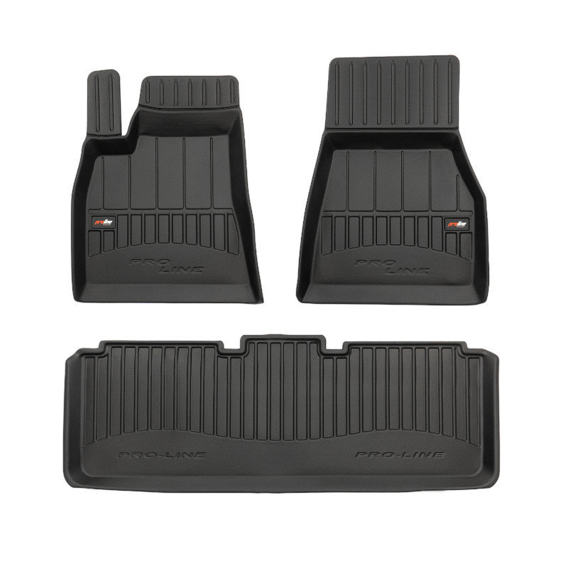 Guminiai ProLine 3D kilimėliai: (aukštos kokybės plastiko, gumos mišinys / TPE, komplektas - 4vnt., juodi, krašto aukštis 7 cm, montavimo būdas - spaustukai). AUTOMOBILIŲ KILIMĖLIAI FROGUM 3D PROLINE LUXURY • Dėl naujoviškos 3D skenavimo technologijos atitinka idealiai; • Kraštai papildomai apsaugoti – aukštis 7 cm, visada švarus automobilis; • Itin patvari medžiaga su unikalia neslystančia struktūra, atspari nešvarumams. • Išskirtinis stabilumas dėl spaustukų – lengvai montuojama spustelėjus; • Pakojo zonos apsauga – komfortas, leidžiantis nuleisti vairuotojo koją; 3D ProLine aukštos kokybės guminiai kilimėliai padeda išlaikyti automobilį švarų. Modernus ir funkcionalus dizainas, ir ypač aukštas kraštas garantuoja efektyvų vandens ir purvo surinkimą ir neleidžia jiems išbėgti. Taip automobilio salonas išlieka švarus. Pagaminti iš aukštos kokybės gumos, kurioje nėra toksiškų komponentų. Bekvapis. Kilimėliai idealiai atitinka ir puikiai priglunda prie salono grindų. Guminiai kilimėliai išlaiko savo elastingumą net esant temperatūros pokyčiams. Specialus paviršius neleidžia kilimėliams slysti vairuojant, o tai daro didelę įtaką saugumui ir kelionės patogumui