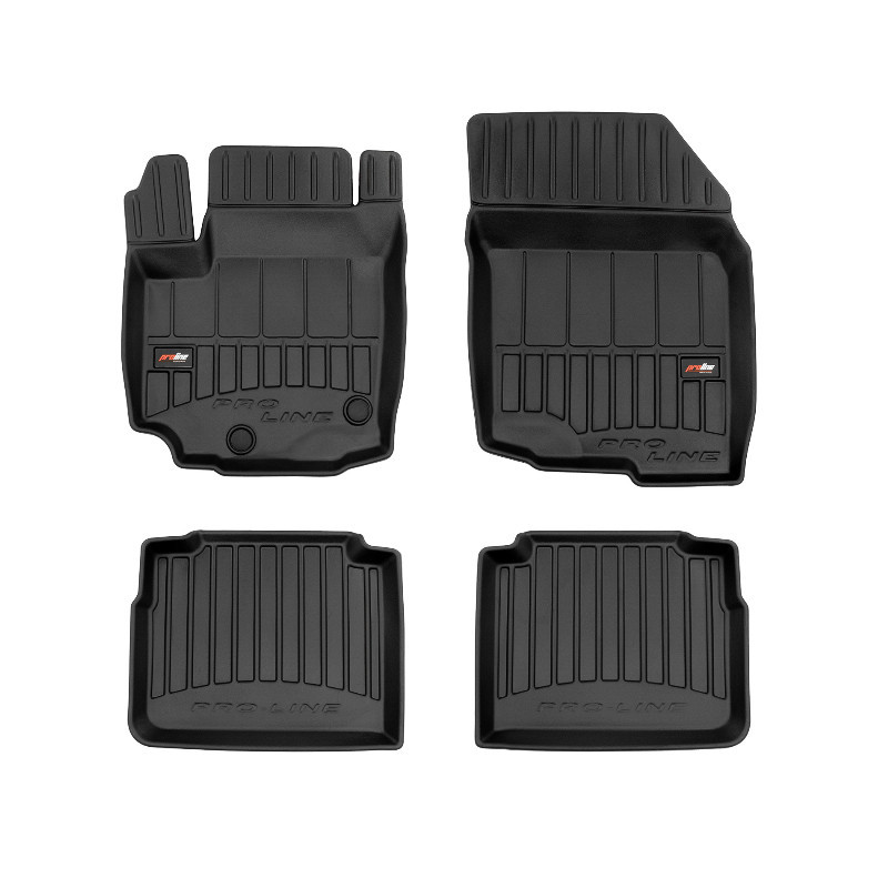 Guminiai ProLine 3D kilimėliai: (aukštos kokybės plastiko, gumos mišinys / TPE, komplektas - 4vnt., juodi, krašto aukštis 7 cm, montavimo būdas - spaustukai). AUTOMOBILIŲ KILIMĖLIAI FROGUM 3D PROLINE LUXURY • Dėl naujoviškos 3D skenavimo technologijos atitinka idealiai; • Kraštai papildomai apsaugoti – aukštis 7 cm, visada švarus automobilis; • Itin patvari medžiaga su unikalia neslystančia struktūra, atspari nešvarumams. • Išskirtinis stabilumas dėl spaustukų – lengvai montuojama spustelėjus; • Pakojo zonos apsauga – komfortas, leidžiantis nuleisti vairuotojo koją; 3D ProLine aukštos kokybės guminiai kilimėliai padeda išlaikyti automobilį švarų. Modernus ir funkcionalus dizainas, ir ypač aukštas kraštas garantuoja efektyvų vandens ir purvo surinkimą ir neleidžia jiems išbėgti. Taip automobilio salonas išlieka švarus. Pagaminti iš aukštos kokybės gumos, kurioje nėra toksiškų komponentų. Bekvapis. Kilimėliai idealiai atitinka ir puikiai priglunda prie salono grindų. Guminiai kilimėliai išlaiko savo elastingumą net esant temperatūros pokyčiams. Specialus paviršius neleidžia kilimėliams slysti vairuojant, o tai daro didelę įtaką saugumui ir kelionės patogumui