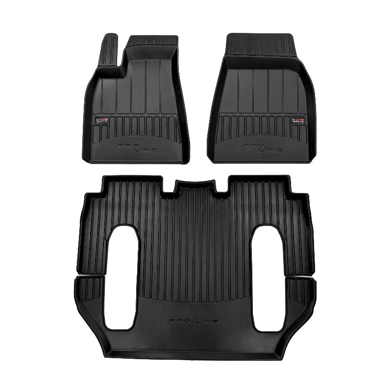 Guminiai ProLine 3D kilimėliai: (aukštos kokybės plastiko, gumos mišinys / TPE, komplektas - 4vnt., juodi, krašto aukštis 7 cm, montavimo būdas - spaustukai). AUTOMOBILIŲ KILIMĖLIAI FROGUM 3D PROLINE LUXURY • Dėl naujoviškos 3D skenavimo technologijos atitinka idealiai; • Kraštai papildomai apsaugoti – aukštis 7 cm, visada švarus automobilis; • Itin patvari medžiaga su unikalia neslystančia struktūra, atspari nešvarumams. • Išskirtinis stabilumas dėl spaustukų – lengvai montuojama spustelėjus; • Pakojo zonos apsauga – komfortas, leidžiantis nuleisti vairuotojo koją; 3D ProLine aukštos kokybės guminiai kilimėliai padeda išlaikyti automobilį švarų. Modernus ir funkcionalus dizainas, ir ypač aukštas kraštas garantuoja efektyvų vandens ir purvo surinkimą ir neleidžia jiems išbėgti. Taip automobilio salonas išlieka švarus. Pagaminti iš aukštos kokybės gumos, kurioje nėra toksiškų komponentų. Bekvapis. Kilimėliai idealiai atitinka ir puikiai priglunda prie salono grindų. Guminiai kilimėliai išlaiko savo elastingumą net esant temperatūros pokyčiams. Specialus paviršius neleidžia kilimėliams slysti vairuojant, o tai daro didelę įtaką saugumui ir kelionės patogumui