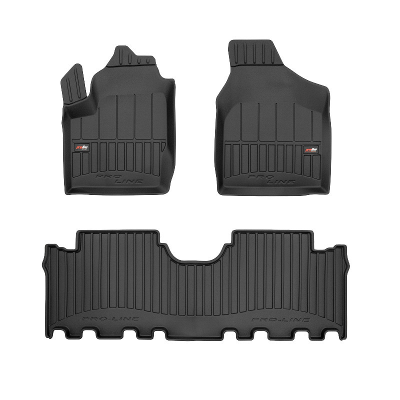 Guminiai ProLine 3D kilimėliai: (aukštos kokybės plastiko, gumos mišinys / TPE, komplektas - 4vnt., juodi, krašto aukštis 7 cm, montavimo būdas - spaustukai). AUTOMOBILIŲ KILIMĖLIAI FROGUM 3D PROLINE LUXURY • Dėl naujoviškos 3D skenavimo technologijos atitinka idealiai; • Kraštai papildomai apsaugoti – aukštis 7 cm, visada švarus automobilis; • Itin patvari medžiaga su unikalia neslystančia struktūra, atspari nešvarumams. • Išskirtinis stabilumas dėl spaustukų – lengvai montuojama spustelėjus; • Pakojo zonos apsauga – komfortas, leidžiantis nuleisti vairuotojo koją; 3D ProLine aukštos kokybės guminiai kilimėliai padeda išlaikyti automobilį švarų. Modernus ir funkcionalus dizainas, ir ypač aukštas kraštas garantuoja efektyvų vandens ir purvo surinkimą ir neleidžia jiems išbėgti. Taip automobilio salonas išlieka švarus. Pagaminti iš aukštos kokybės gumos, kurioje nėra toksiškų komponentų. Bekvapis. Kilimėliai idealiai atitinka ir puikiai priglunda prie salono grindų. Guminiai kilimėliai išlaiko savo elastingumą net esant temperatūros pokyčiams. Specialus paviršius neleidžia kilimėliams slysti vairuojant, o tai daro didelę įtaką saugumui ir kelionės patogumui