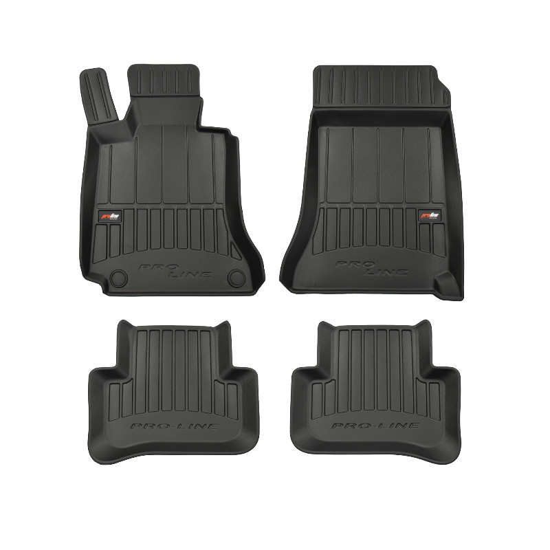 Guminiai ProLine 3D kilimėliai: (aukštos kokybės plastiko, gumos mišinys / TPE, komplektas - 4vnt., juodi, krašto aukštis 7 cm, montavimo būdas - spaustukai). AUTOMOBILIŲ KILIMĖLIAI FROGUM 3D PROLINE LUXURY • Dėl naujoviškos 3D skenavimo technologijos atitinka idealiai; • Kraštai papildomai apsaugoti – aukštis 7 cm, visada švarus automobilis; • Itin patvari medžiaga su unikalia neslystančia struktūra, atspari nešvarumams. • Išskirtinis stabilumas dėl spaustukų – lengvai montuojama spustelėjus; • Pakojo zonos apsauga – komfortas, leidžiantis nuleisti vairuotojo koją; 3D ProLine aukštos kokybės guminiai kilimėliai padeda išlaikyti automobilį švarų. Modernus ir funkcionalus dizainas, ir ypač aukštas kraštas garantuoja efektyvų vandens ir purvo surinkimą ir neleidžia jiems išbėgti. Taip automobilio salonas išlieka švarus. Pagaminti iš aukštos kokybės gumos, kurioje nėra toksiškų komponentų. Bekvapis. Kilimėliai idealiai atitinka ir puikiai priglunda prie salono grindų. Guminiai kilimėliai išlaiko savo elastingumą net esant temperatūros pokyčiams. Specialus paviršius neleidžia kilimėliams slysti vairuojant, o tai daro didelę įtaką saugumui ir kelionės patogumui