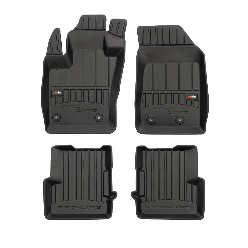 Guminiai ProLine 3D kilimėliai: (aukštos kokybės plastiko, gumos mišinys / TPE, komplektas - 4vnt., juodi, krašto aukštis 7 cm, montavimo būdas - spaustukai). AUTOMOBILIŲ KILIMĖLIAI FROGUM 3D PROLINE LUXURY • Dėl naujoviškos 3D skenavimo technologijos atitinka idealiai; • Kraštai papildomai apsaugoti – aukštis 7 cm, visada švarus automobilis; • Itin patvari medžiaga su unikalia neslystančia struktūra, atspari nešvarumams. • Išskirtinis stabilumas dėl spaustukų – lengvai montuojama spustelėjus; • Pakojo zonos apsauga – komfortas, leidžiantis nuleisti vairuotojo koją; 3D ProLine aukštos kokybės guminiai kilimėliai padeda išlaikyti automobilį švarų. Modernus ir funkcionalus dizainas, ir ypač aukštas kraštas garantuoja efektyvų vandens ir purvo surinkimą ir neleidžia jiems išbėgti. Taip automobilio salonas išlieka švarus. Pagaminti iš aukštos kokybės gumos, kurioje nėra toksiškų komponentų. Bekvapis. Kilimėliai idealiai atitinka ir puikiai priglunda prie salono grindų. Guminiai kilimėliai išlaiko savo elastingumą net esant temperatūros pokyčiams. Specialus paviršius neleidžia kilimėliams slysti vairuojant, o tai daro didelę įtaką saugumui ir kelionės patogumui
