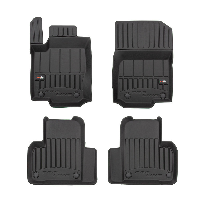 Guminiai ProLine 3D kilimėliai: (aukštos kokybės plastiko, gumos mišinys / TPE, komplektas - 4vnt., juodi, krašto aukštis 7 cm, montavimo būdas - spaustukai). AUTOMOBILIŲ KILIMĖLIAI FROGUM 3D PROLINE LUXURY • Dėl naujoviškos 3D skenavimo technologijos atitinka idealiai; • Kraštai papildomai apsaugoti – aukštis 7 cm, visada švarus automobilis; • Itin patvari medžiaga su unikalia neslystančia struktūra, atspari nešvarumams. • Išskirtinis stabilumas dėl spaustukų – lengvai montuojama spustelėjus; • Pakojo zonos apsauga – komfortas, leidžiantis nuleisti vairuotojo koją; 3D ProLine aukštos kokybės guminiai kilimėliai padeda išlaikyti automobilį švarų. Modernus ir funkcionalus dizainas, ir ypač aukštas kraštas garantuoja efektyvų vandens ir purvo surinkimą ir neleidžia jiems išbėgti. Taip automobilio salonas išlieka švarus. Pagaminti iš aukštos kokybės gumos, kurioje nėra toksiškų komponentų. Bekvapis. Kilimėliai idealiai atitinka ir puikiai priglunda prie salono grindų. Guminiai kilimėliai išlaiko savo elastingumą net esant temperatūros pokyčiams. Specialus paviršius neleidžia kilimėliams slysti vairuojant, o tai daro didelę įtaką saugumui ir kelionės patogumui