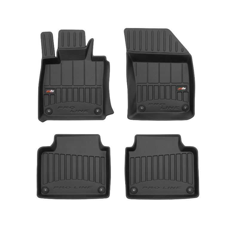 Guminiai ProLine 3D kilimėliai: (aukštos kokybės plastiko, gumos mišinys / TPE, komplektas - 3vnt., juodi, krašto aukštis 7 cm, montavimo būdas - spaustukai). AUTOMOBILIŲ KILIMĖLIAI FROGUM 3D PROLINE LUXURY • Dėl naujoviškos 3D skenavimo technologijos atitinka idealiai; • Kraštai papildomai apsaugoti – aukštis 7 cm, visada švarus automobilis; • Itin patvari medžiaga su unikalia neslystančia struktūra, atspari nešvarumams. • Išskirtinis stabilumas dėl spaustukų – lengvai montuojama spustelėjus; • Pakojo zonos apsauga – komfortas, leidžiantis nuleisti vairuotojo koją; 3D ProLine aukštos kokybės guminiai kilimėliai padeda išlaikyti automobilį švarų. Modernus ir funkcionalus dizainas, ir ypač aukštas kraštas garantuoja efektyvų vandens ir purvo surinkimą ir neleidžia jiems išbėgti. Taip automobilio salonas išlieka švarus. Pagaminti iš aukštos kokybės gumos, kurioje nėra toksiškų komponentų. Bekvapis. Kilimėliai idealiai atitinka ir puikiai priglunda prie salono grindų. Guminiai kilimėliai išlaiko savo elastingumą net esant temperatūros pokyčiams. Specialus paviršius neleidžia kilimėliams slysti vairuojant, o tai daro didelę įtaką saugumui ir kelionės patogumui