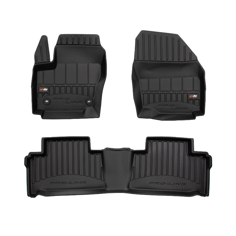Guminiai ProLine 3D kilimėliai: (aukštos kokybės plastiko, gumos mišinys / TPE, komplektas - 4vnt., juodi, krašto aukštis 7 cm, montavimo būdas - spaustukai). AUTOMOBILIŲ KILIMĖLIAI FROGUM 3D PROLINE LUXURY • Dėl naujoviškos 3D skenavimo technologijos atitinka idealiai; • Kraštai papildomai apsaugoti – aukštis 7 cm, visada švarus automobilis; • Itin patvari medžiaga su unikalia neslystančia struktūra, atspari nešvarumams. • Išskirtinis stabilumas dėl spaustukų – lengvai montuojama spustelėjus; • Pakojo zonos apsauga – komfortas, leidžiantis nuleisti vairuotojo koją; 3D ProLine aukštos kokybės guminiai kilimėliai padeda išlaikyti automobilį švarų. Modernus ir funkcionalus dizainas, ir ypač aukštas kraštas garantuoja efektyvų vandens ir purvo surinkimą ir neleidžia jiems išbėgti. Taip automobilio salonas išlieka švarus. Pagaminti iš aukštos kokybės gumos, kurioje nėra toksiškų komponentų. Bekvapis. Kilimėliai idealiai atitinka ir puikiai priglunda prie salono grindų. Guminiai kilimėliai išlaiko savo elastingumą net esant temperatūros pokyčiams. Specialus paviršius neleidžia kilimėliams slysti vairuojant, o tai daro didelę įtaką saugumui ir kelionės patogumui
