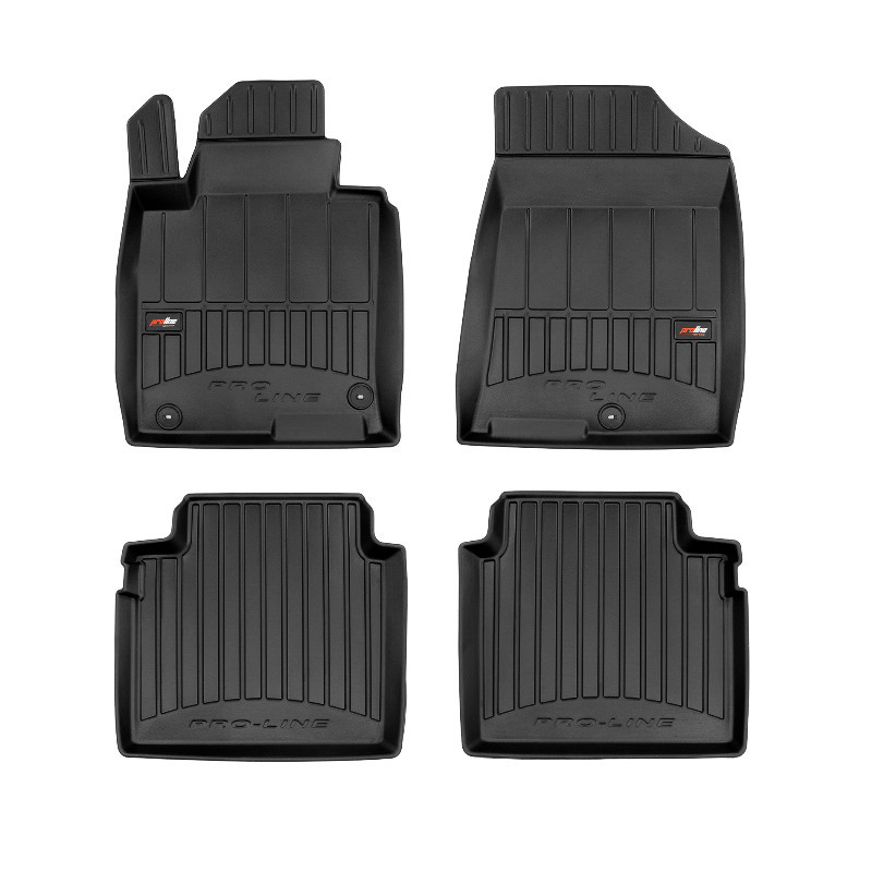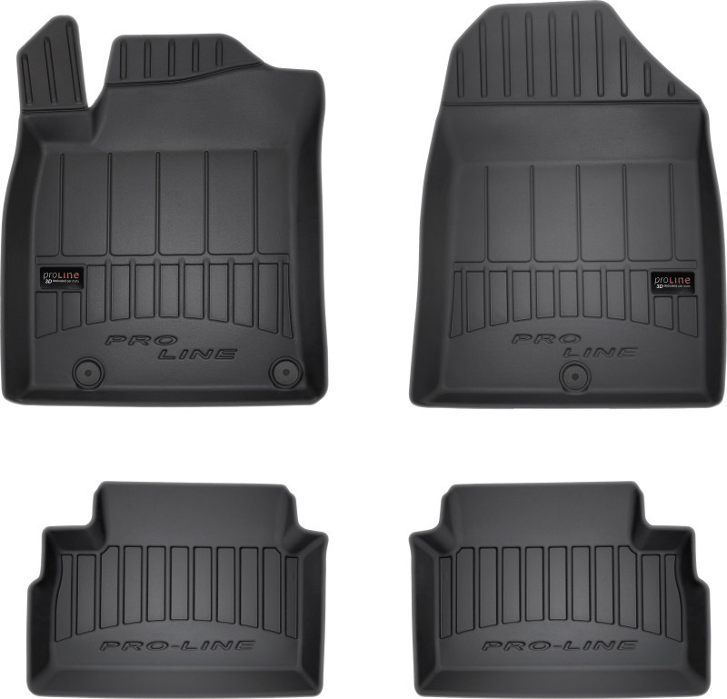 Guminiai Premium 77 kilimėliai: (aukštos kokybės plastiko, gumos mišinys / TPE, komplektas - 4vnt., juodi, krašto aukštis 4 cm, montavimo būdas - spaustukai). AUTOMOBILIŲ KILIMĖLIAI FROGUM 77 PREMIUM • Dėl naujoviškos 3D skenavimo technologijos atitinka idealiai; • Krašto aukštis - 4 cm suteikia didesnę apsaugą nuo nešvarumų • Modernus ir funkcionalus dizainas, išlaikantis nešvarumus kilimėlio viduje • Neslystantys spacialūs spaustukai, lengva montuoti; • Speciali apsauga, leidžianti nuleisti vairuotojo koją; Aukšto lygio apsauga jūsų automobiliui, kilimėliai idealiai atitinka ir puikiai priglunda prie salono grindų. Modernus ir funkcionalus dizainas, bei aukštas kraštas garantuoja efektyvų vandens ir purvo surinkimą ir neleidžia jam nutekėti. Taip automobilio salonas išlieka švarus. Pagaminti iš aukštos kokybės gumos, kurioje nėra toksiškų komponentų. Bekvapis. Kilimėliai turi spaustukus, todėl jį lengva pritvirtinti prie grindų. Guminiai kilimėliai išlaiko savo elastingumą net esant temperatūros pokyčiams. Specialus paviršius neleidžia kilimėliams slysti vairuojant, todėl labai paveikia saugumą ir kelionės komfortą.
