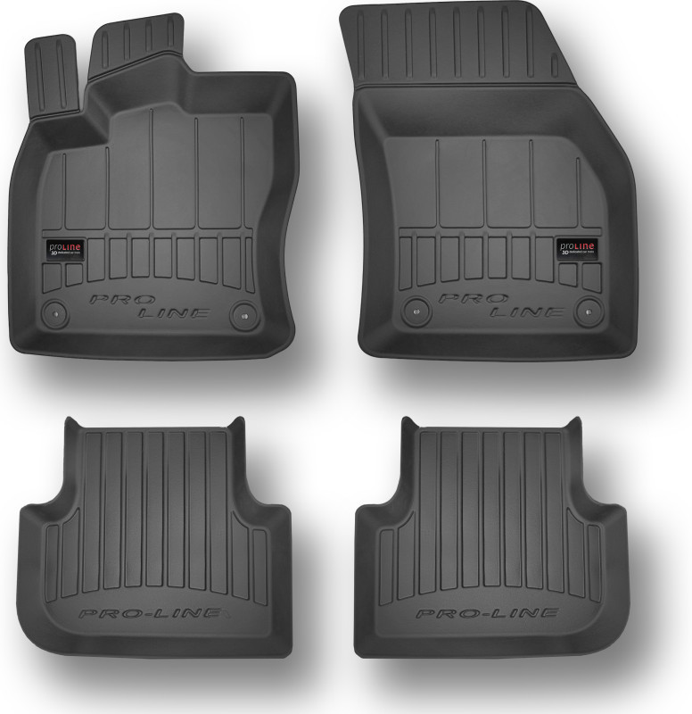 Guminiai ProLine 3D kilimėliai: (aukštos kokybės plastiko, gumos mišinys / TPE, komplektas - 3vnt., juodi, krašto aukštis 7 cm, montavimo būdas - spaustukai). AUTOMOBILIŲ KILIMĖLIAI FROGUM 3D PROLINE LUXURY • Dėl naujoviškos 3D skenavimo technologijos atitinka idealiai; • Kraštai papildomai apsaugoti – aukštis 7 cm, visada švarus automobilis; • Itin patvari medžiaga su unikalia neslystančia struktūra, atspari nešvarumams. • Išskirtinis stabilumas dėl spaustukų – lengvai montuojama spustelėjus; • Pakojo zonos apsauga – komfortas, leidžiantis nuleisti vairuotojo koją; 3D ProLine aukštos kokybės guminiai kilimėliai padeda išlaikyti automobilį švarų. Modernus ir funkcionalus dizainas, ir ypač aukštas kraštas garantuoja efektyvų vandens ir purvo surinkimą ir neleidžia jiems išbėgti. Taip automobilio salonas išlieka švarus. Pagaminti iš aukštos kokybės gumos, kurioje nėra toksiškų komponentų. Bekvapis. Kilimėliai idealiai atitinka ir puikiai priglunda prie salono grindų. Guminiai kilimėliai išlaiko savo elastingumą net esant temperatūros pokyčiams. Specialus paviršius neleidžia kilimėliams slysti vairuojant, o tai daro didelę įtaką saugumui ir kelionės patogumui
