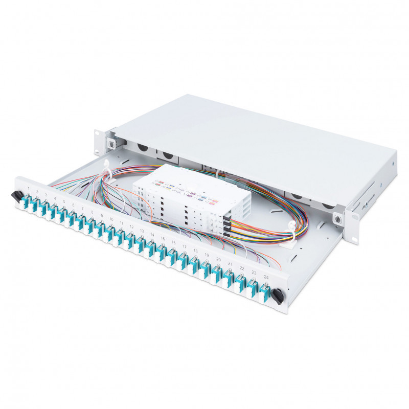 DIGITUS LWL Spleißbox 1HE bestückt 24x LC DX OM3 grau