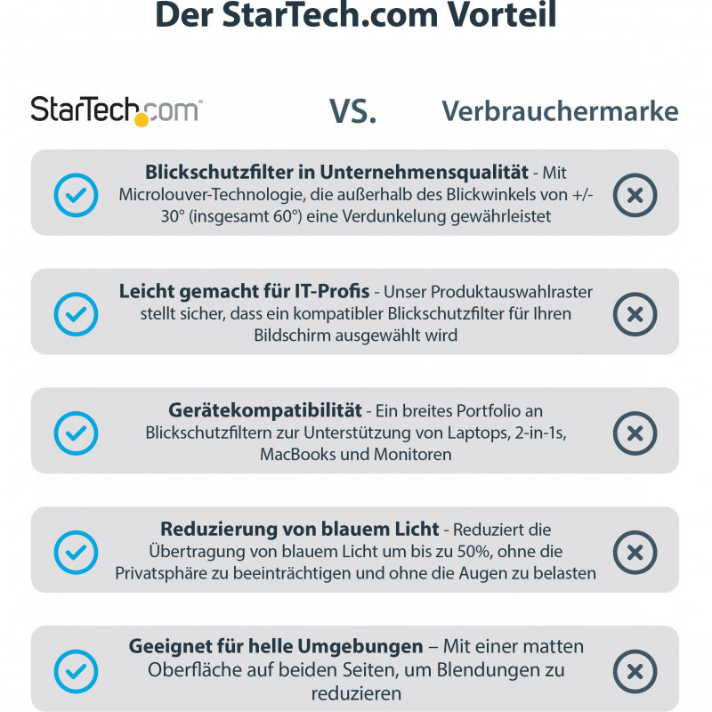 "StarTech.com 14-inch MacBook Pro 21/23 Laptop Privacy Screen, Anti-Glare Privacy Filter with 51% Blue Light Reduction, Monitor Screen Protector with +/- 30 deg. Viewing Angle, Reversible Matte/Glossy Sides. Maximum screen size: 35.6 cm (14""), Suitable for: Laptop, Type: Frameless display privacy filter. Surface finish: Glossy / Matt, Light transmission: 60%, Limits viewing angle: 30°. Weight: 45 g"\n"Prevent visual eavesdropping by limiting the viewing angles of your 14"" MacBook Pro screen