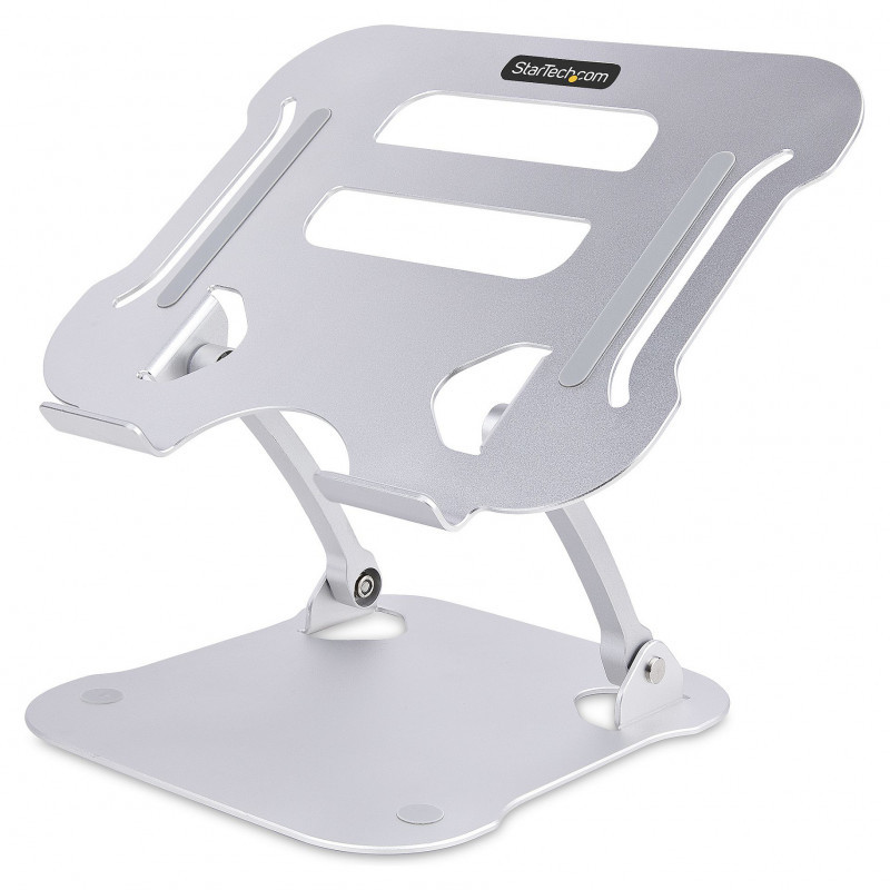 "StarTech.com Laptop Stand for Desk, Ergonomic Laptop Stand Adjustable Height, Aluminum, Portable, Supports up to 22lb (10kg), Foldable Laptop Holder for Desk - Angled Notebook Computer Riser/Lift. Product type: Laptop stand, Product colour: Silver, Material: Aluminium. Height adjustment range: 33.2 - 120 mm. Width: 226 mm, Depth: 269 mm, Height: 50 mm. Package width: 235 mm, Package depth: 280 mm, Package height: 60 mm. Master (outer) case width: 290 mm, Master (outer) case length: 620 mm, Master (outer) case height: 490 mm"\n"Variable Height and Tilt | Vented | Ligthweight (1.5lb/714g)