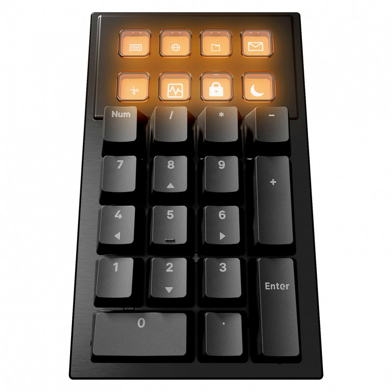 The Dark Mount modular keyboard delivers an uncompromising set of features, like 8 Displays Keys and a Media Dock."