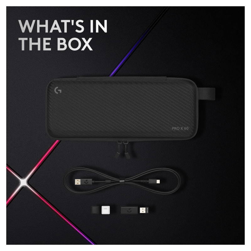 "Logitech G 920-011907. Keyboard form factor: 60%. Keyboard style: Straight. Connectivity technology: Wired & Wireless, Device interface: RF Wireless + Bluetooth, Keyboard key switch: Mechanical, Keyboard layout: QWERTZ. Backlight type: RGB LED. Cable length: 1.8 m. Recommended usage: Gaming. Product colour: Black"\n