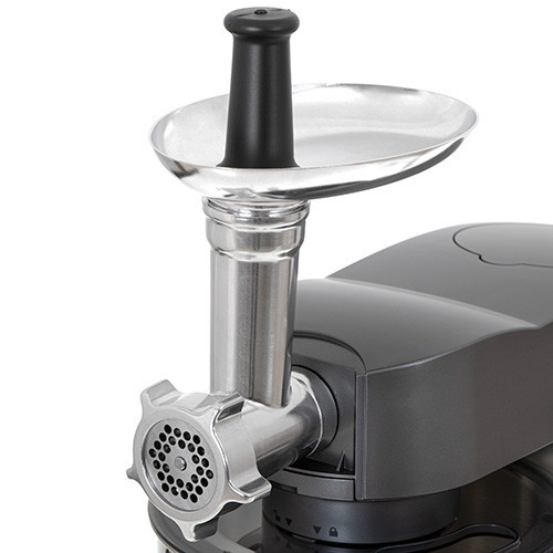 4 functions: Kneading heavy dough (bread dough, yeast dough, etc.); Mixing light mixtures (mayonnaise, pancake batter, sponge cake, etc.); Whipping (egg whites, cake creams, whipped cream, etc.); Meat mincer up to 1,5 kg meat/minute with 3 sieves: 3, 5, 7 mm |