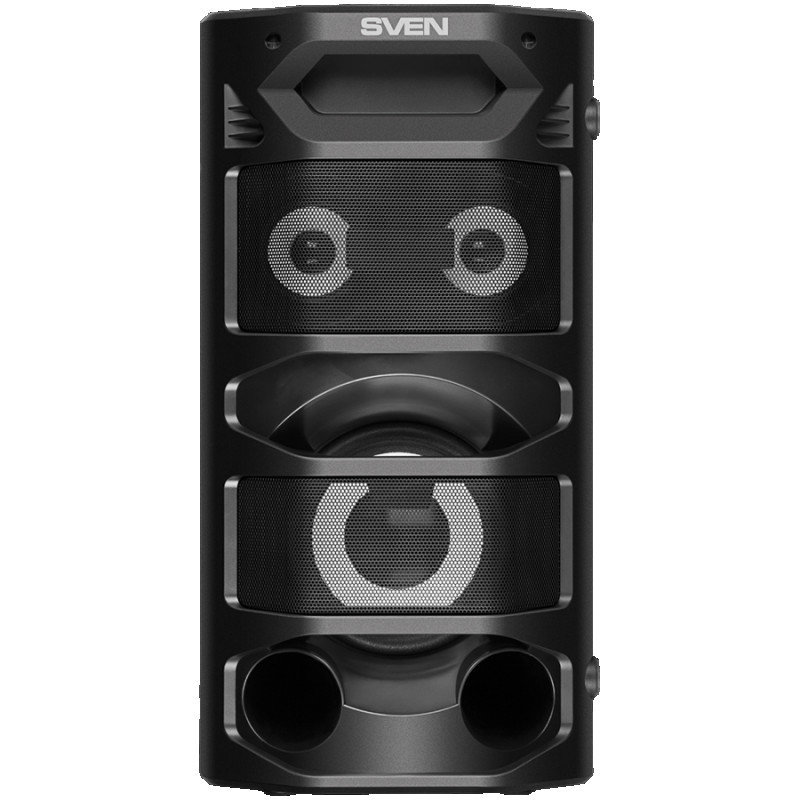 2.0 portable speaker SVEN PS-670, black, power output 2x32.5W (RMS), TWS, Bluetooth, FM, USB, microSD, LED-display, RC, lithium battery