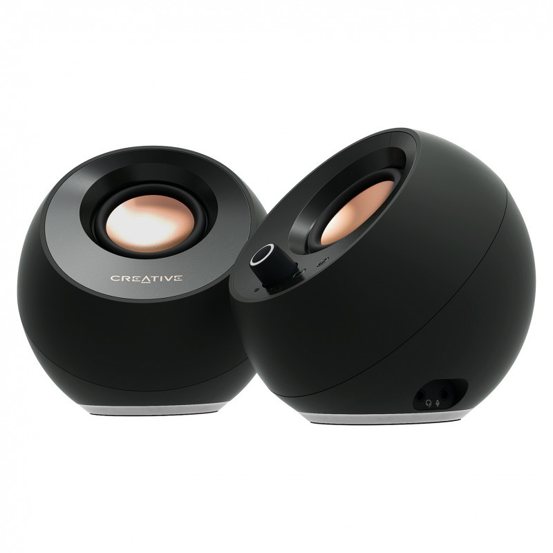 "Creative Labs Creative Pebble Pro Black"\n"Now with customizable RGB lighting! The Creative Pebble Pro speakers let you pick from a wide spectrums of colors and three lighting effects via a simple plug-and-play setup.