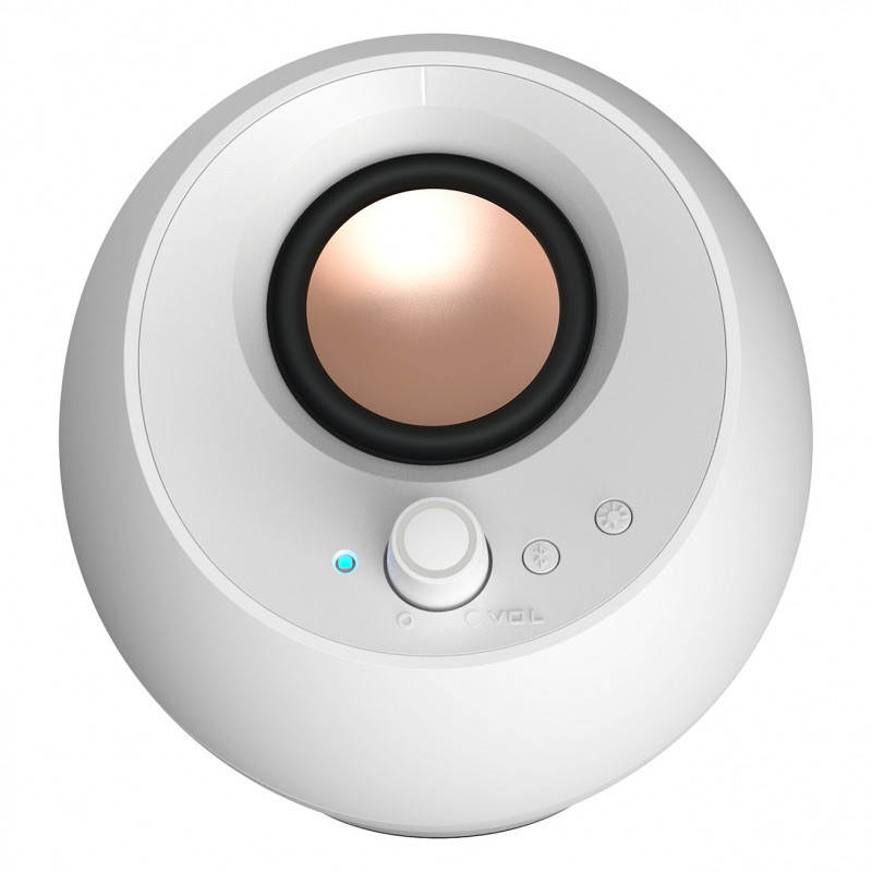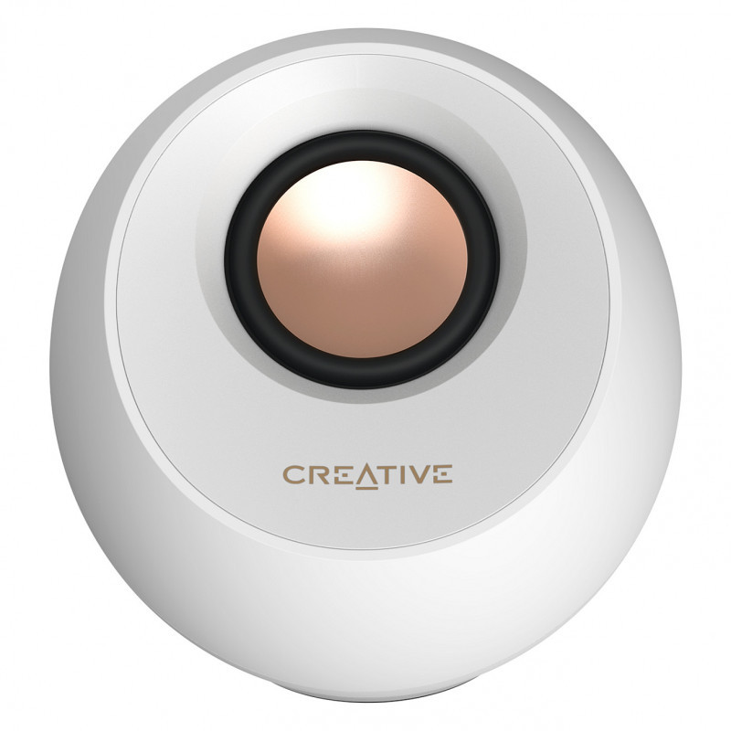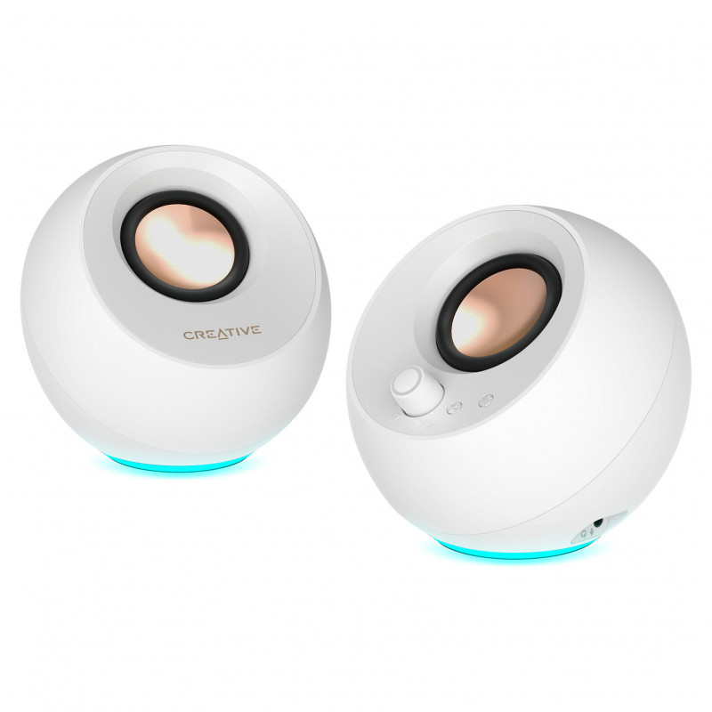 "Creative Labs Creative Pebble Pro White"\n"Now with customizable RGB lighting! The Creative Pebble Pro speakers let you pick from a wide spectrums of colors and three lighting effects via a simple plug-and-play setup.