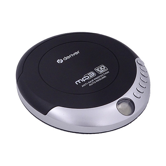 "Denver DMP-391. Audio formats supported: MP3. Playback disc formats: MP3. Device type: Portable CD player, Product colour: Black, Grey, Shock resistant memory: 100 s. Power source type: Battery. Depth: 150 mm, Height: 28 mm, Width: 135 mm"\n"Portable CD/MP3 player with antishock and resume function