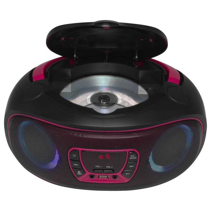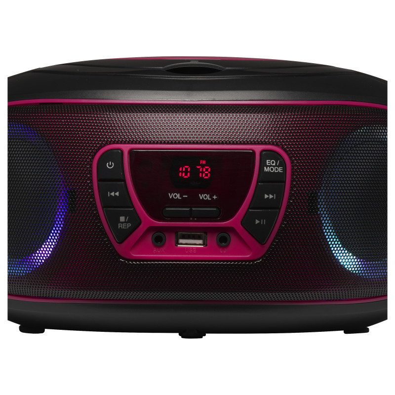 "Denver TCL-212BT PINK. RMS rated power: 4 W. Supported radio bands: FM, Antenna type: External. Device type: Portable CD player, Product colour: Black, Pink. Headphone connectivity: 3.5 mm. Power source type: AC, Battery, AC adapter input voltage: 230 V"\n