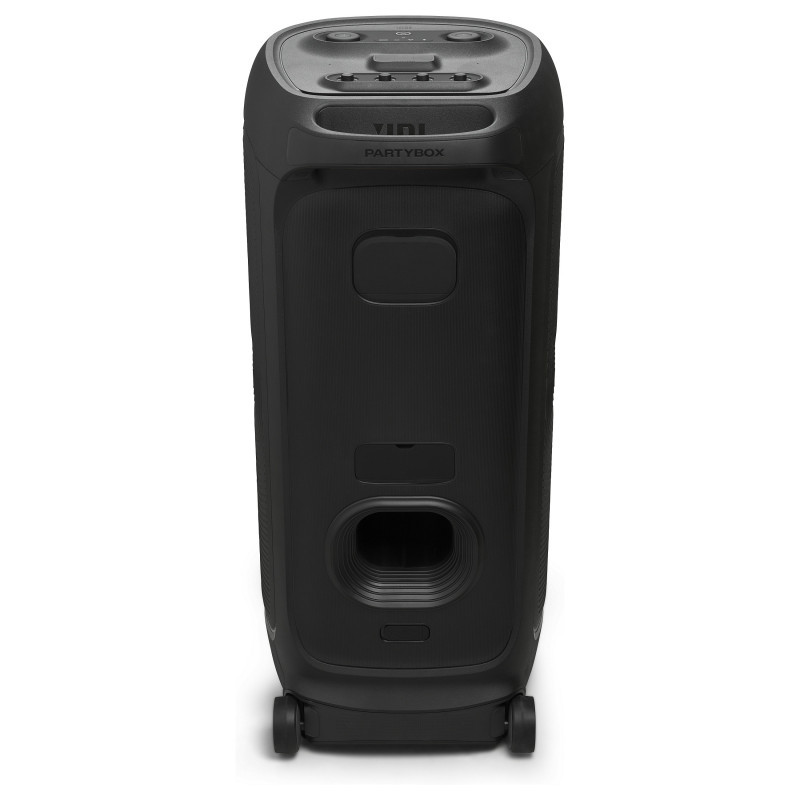 "JBL PartyBox Ultimate. Tweeter diameter (imperial): 6.98 cm (2.75""), Tweeter diameter: 7.4 cm, Subwoofer driver diameter: 24.2 cm. RMS rated power: 1100 W, Signal-to-Noise Ratio (SNR): 80 dB. Connectivity technology: Wired & Wireless, Frequency range: 2.4 - 2.4835 GHz, Bluetooth profiles: A2DP, AVRCP. Product colour: Black, Product design: Tube, Protection features: Splash proof. Audio formats supported: MP3, WAV"\n"Party without limits
