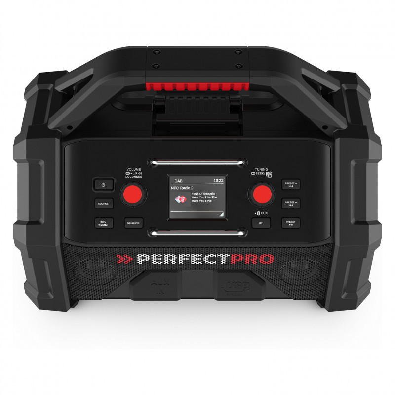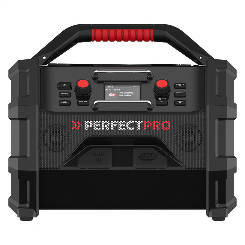 "Perfectpro ROCKTAGON. Radio type: Worksite, Tuner type: Digital, Supported radio bands: DAB+, FM. RMS rated power: 30 W. Impedance: 8 Ω. USB connector type: USB Type-A. Product colour: Black, Red, Protection features: Dirt resistant, Dust resistant, Rain proof, Shock resistant, International Protection (IP) code: IP65"\n