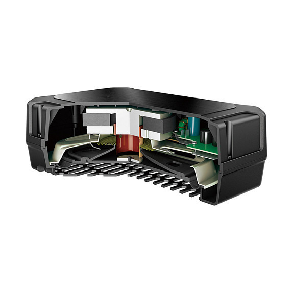 Combines a built-in 250-watt Class D amplifier realizing low power consumption (9.4A Max) with a new “down fire” enclosure design to achieve a rich low frequency response.