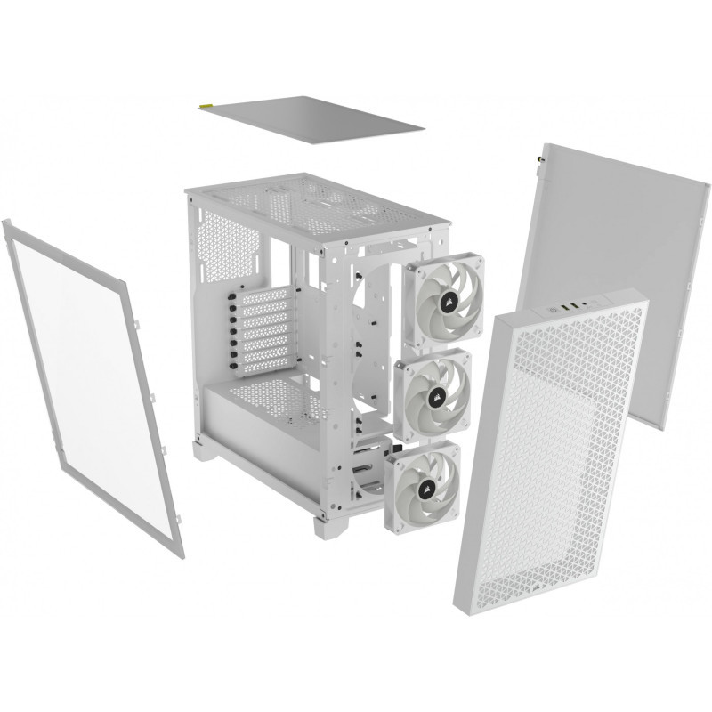 "Corsair CC-9011256-WW. Form factor: Midi Tower, Type: PC, Product colour: White. Front fans installed: 3x 120 mm, Front fans diameters supported: 120 mm, Front radiator sizes supported: 120,140,240,280,360 mm. Supported HDD sizes: 2.5,3.5"". Width: 230 mm, Depth: 462 mm, Height: 466 mm"\n"3000D RGB AIRFLOW Mid-Tower PC Case - Black