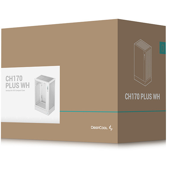 "DeepCool CH170 PLUS WH. Form factor: Midi Tower, Type: PC, Product colour: White. Power supply location: Top, Supported power supply form factors: ATX, PS2, SFX, SFX-L. Rear fans diameters supported: 120 mm, Top fans diameters supported: 120 mm, Rear radiator sizes supported: 120 mm. Supported HDD sizes: 2.5,3.5"". Width: 195 mm, Depth: 290 mm, Height: 424.5 mm"\n