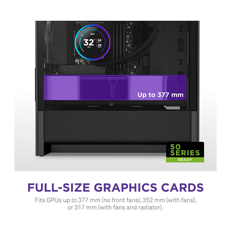 Max length of 377 mm (no front fans), 352 mm (with fans), 317 mm (with fans & radiator).