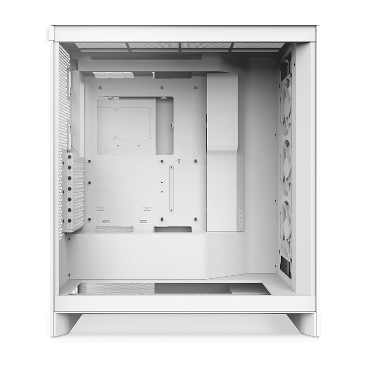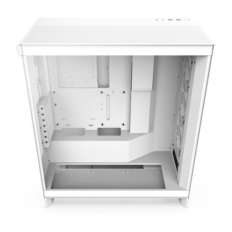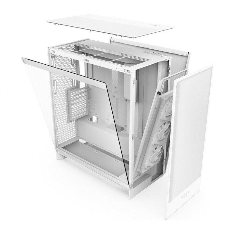 "NZXT H7 Flow RGB. Form factor: Midi Tower, Type: PC, Product colour: White. Front fans installed: 3x 120 mm, Front fans diameters supported: 120,140 mm, Rear fans diameters supported: 120,140 mm. Supported HDD sizes: 2.5,3.5"". Width: 244 mm, Depth: 468 mm, Height: 544 mm"\n"The H7 Flow RGB revolutionizes GPU cooling in a classic mid-tower form factor. Its vertical PSU layout allows space for 3 x 120mm bottom fans, offering efficient cooling without expanding the case footprint.