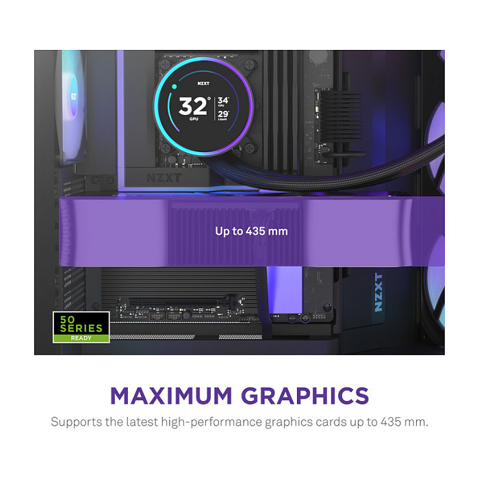 Handles GPUs up to 435 mm, giving plenty of space for top-tier graphics cards.