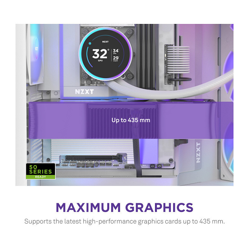 Handles GPUs up to 435 mm, giving plenty of space for top-tier graphics cards.