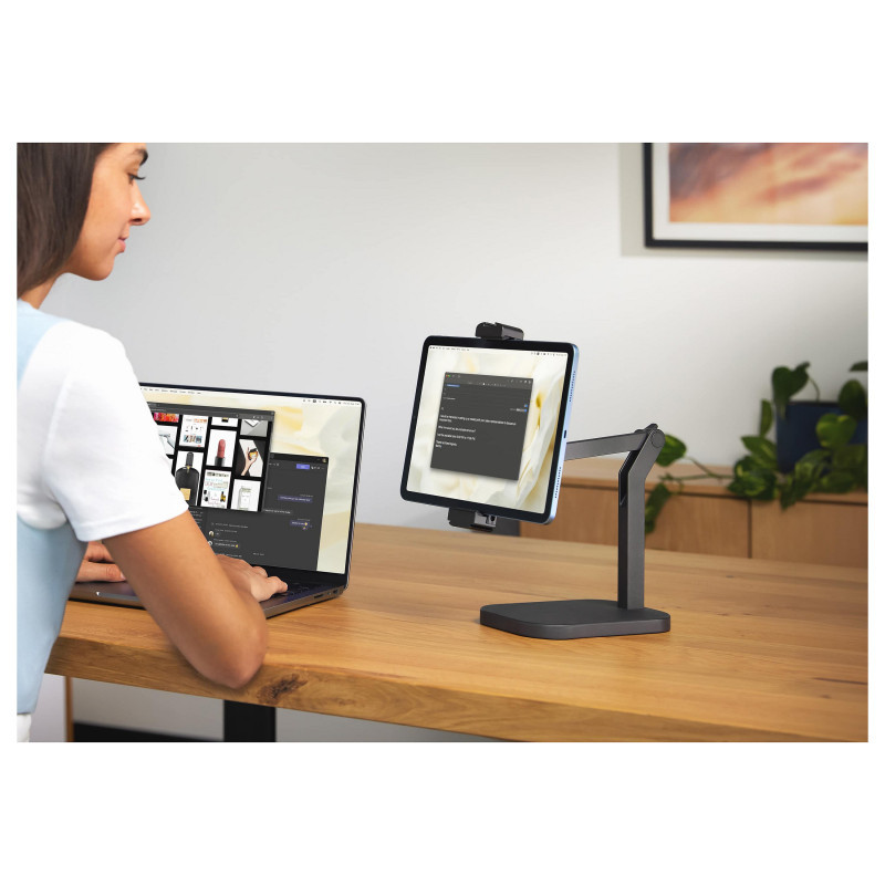 Conferencing? Attach a webcam to frame the perfect shot. Filming? Place your lighting like a pro gaffer. Whatever the job, Wave Desk Stand delivers.