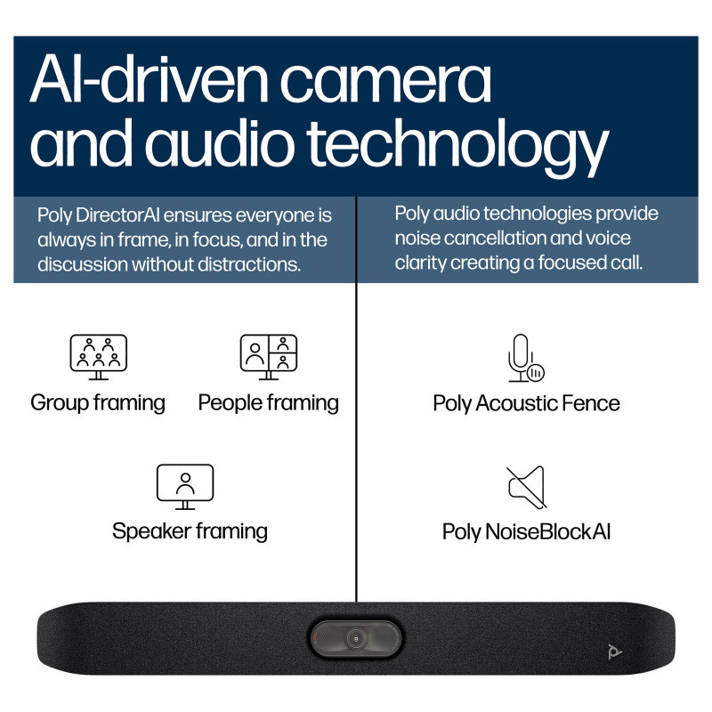 Small rooms, big conversations. Simplify the moment with the all-in-one Poly Studio X32 video bar. Deliver an immersive and inclusive experience with advanced audio and video AI technology and connect instantly with built-in video conferencing apps."