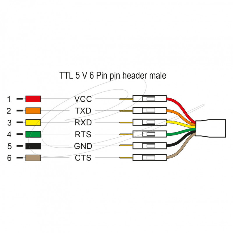 Konverter USB 2.0 Typ-A zu UART TTL (5 V) Schnittstelle mit 6 x Pfostenstecker TX/RX/CTS/RTS und 5 V Ausgangsspannung 1,8 m