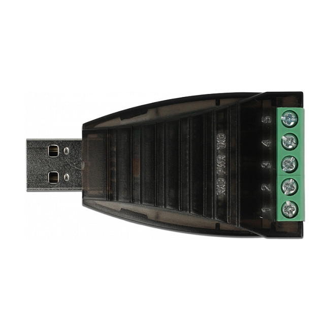 "DeLOCK 87738. Data transfer rate: 921.6 Mbit/s. Product colour: Black, Housing material: Plastic. Connectivity technology: Wired. Width: 33 mm, Depth: 62 mm, Height: 16 mm. Package type: Box"\n"This USB Type-A to RS-422/485 converter by Delock