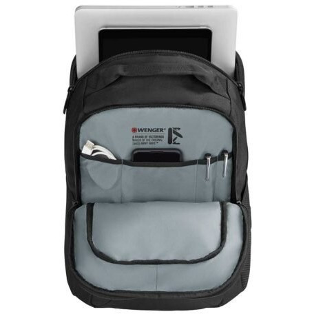 "Wenger/SwissGear 611905. Backpack type: Casual backpack, Product main colour: Black, Minimum screen size: 25.4 cm (10""). Width: 440 mm, Depth: 310 mm, Height: 220 mm. Material: Polyester"\n