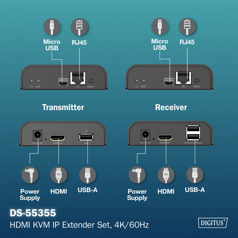 Digitus HDMI KVM IP Extender Set, 4K/60Hz | DS-55355