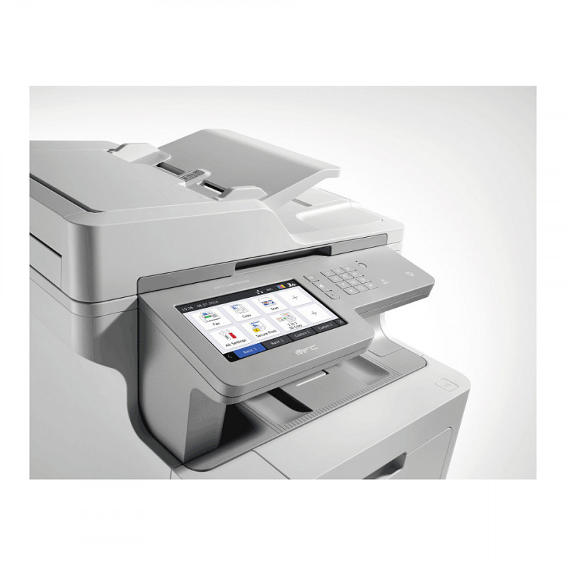 "Brother MFC-L9570CDW. Print technology: Laser, Printing: Colour printing, Maximum resolution: 2400 x 600 DPI, Print speed (colour, normal quality, A4/US Letter): 31 ppm. Copying: Colour copying, Maximum copy resolution: 1200 x 600 DPI. Scanning: Colour scanning, Optical scanning resolution: 1200 x 2400 DPI. Faxing: Mono faxing. Maximum ISO A-series paper size: A4. Wi-Fi. Direct printing. Product colour: White"\n"*Images for illustrative purposes only Enhance performance with the large user-friendly touchscreen and super-fast ADF. With a number of optional lower paper trays, less time can be spent replenishing paper, maximising device uptime. With impressive scan and printing speeds, you can be sure that the MFC-L9570CDW will be a great asset to your business."