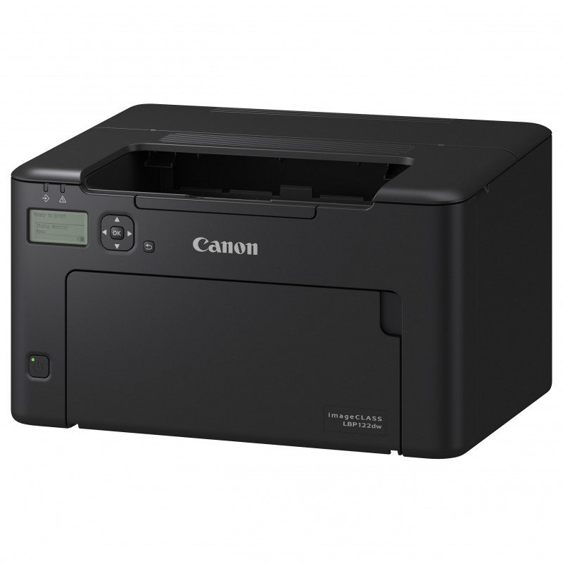 "Canon i-SENSYS LBP122dw. Print technology: Laser. Number of print cartridges: 1, Maximum duty cycle: 20000 pages per month. Maximum resolution: 2400 x 600 DPI. Maximum ISO A-series paper size: A4. Print speed (black, normal quality, A4/US Letter): 29 ppm, Duplex printing. Display: LCD. Wi-Fi. Product colour: Black"\n"Flawless reliability from a speedy device