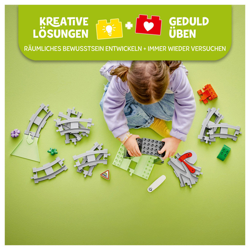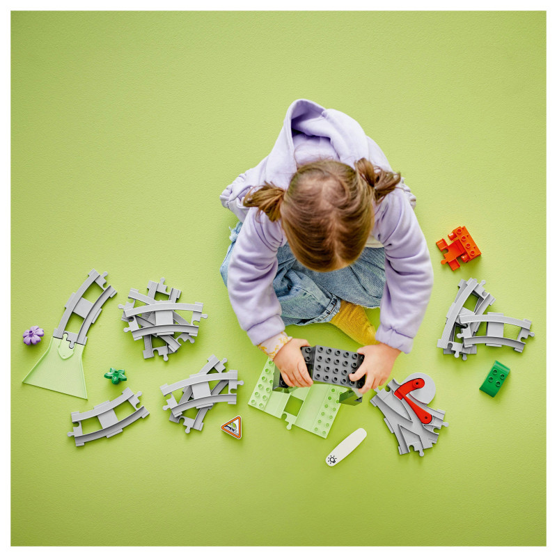 Track building that connects to toy train sets – Add this set to LEGO® DUPLO® Town interactive train sets (10427 and 10428) to create an even bigger learning journey for preschool-aged kids