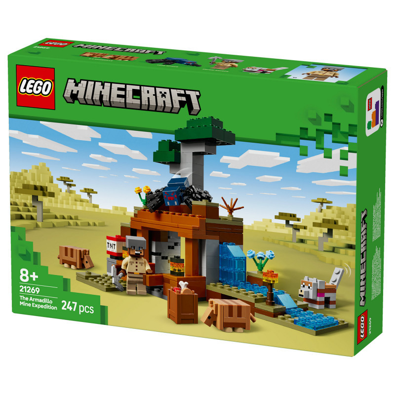 "LEGO Minecraft The Armadillo Mine Expedition. Product type: Building set, Recommended age (min): 8 yr(s), Material: Plastic, Number of pieces: 247 pc(s). Package weight: 413 g"\n"The Armadillo Mine Expedition (21269) toy lets Minecraft® players get hands-on with the popular video game. With cool characters and fun features, this LEGO® Minecraft toy is a thrilling gaming set packed with imaginative play possibilities for kids aged 8 and over.